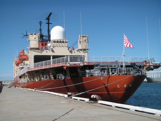 12月6日(火)13:00(日本時間同日15:00)に、しらせは南緯45度東経110度付近の地点に到着した。ここで、約3時間停船し、後方の甲板で海水の採取等の海洋観測がおこなわれる。ようやく、船酔いにようやくなれてきた私は、これを見学に行った(※註2)。