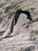 この島には、アデリーペンギンの集団繁殖地(ルッカリー)が、島の北西端の斜面に1箇所(写真1)、北の内湾の奥にある小高い丘に1箇所(写真2)ある。その他、十数羽程度の小さな集団があった。