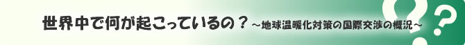 1992年に世界は、国連の下、大気中の温室効果ガスの濃度を安定化させることを究極の目標とする「気候変動に関する国際連合枠組条約」(United Nations Framework Convention on Climate Change、以下「気候変動枠組条約」)を採択し、地球温暖化対策に世界全体で貢献していくことに合意しました。同条約に基づき、1995年から毎年、気候変動枠組条約締約国会議(COP)が開催されています。