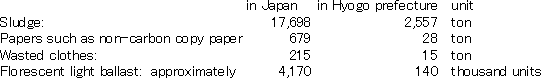 Amount of PCB contaminated solid wastes in Japan and Hyogo prefecture is estimated as below.