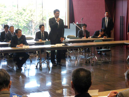 静岡県島田市にて、横光副大臣が島田市住民説明会に出席し、広域処理の安全性の説明と災害廃棄物の受入についての協力をお願いしました。