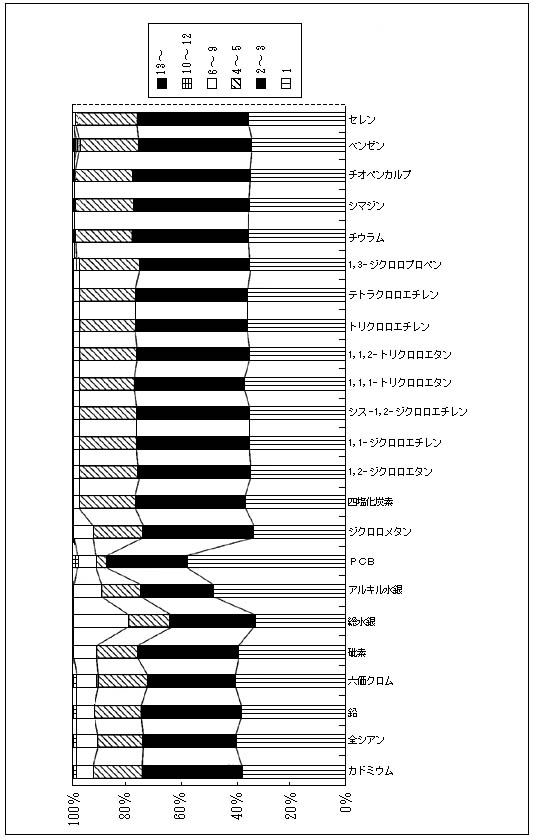 また、平成11年2月22日には環境基準項目に新たに3項目が追加され、今後も、水環境中でリスクの高い物質が環境基準項目に順次追加されると考えられ、測定項目数がさらに増大していく可能性が高い。