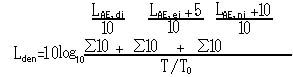 航空機騒音の測定評価量は、時間帯補正等価騒音レベルとする。時間帯補正等価騒音レベルは、@により定義される単発騒音暴露レベルを用いて等価騒音レベルを算出し、これにAの定義により時間帯補正を加えて求める。