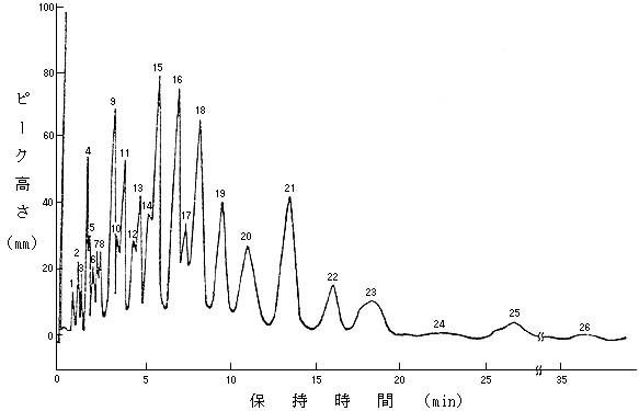 1 分離管充てん物の被覆にOV―1を用いたときのクロマトグラム