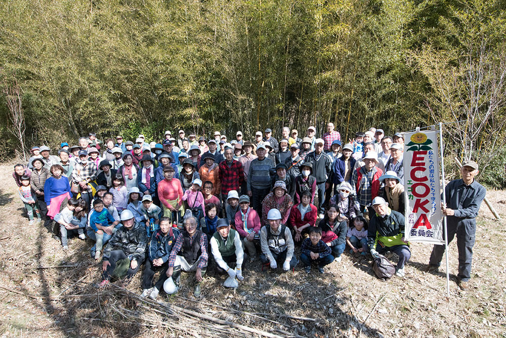 ECOKA委員会が結成されたのは平成20(2008)年6月です。もともとは大阪などの企業に勤めていた人がほとんどで、森林については素人同然だったのですが、メンバーのみなさんはチェーンソーの使い方や森林整備の講習を受けるなどして、森を守るための知識と技術を習得。無秩序に生い茂った竹を切り、不法投棄されたゴミを片付けるなどの作業を続けてきました。