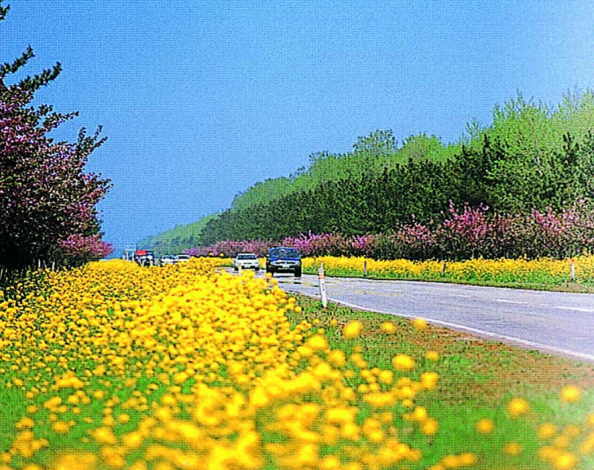 14haの菜の花畑(ロードを含む)が広がる。入植した農業者のOBで組織する「耕心会」が村から委託を受けて栽培している。