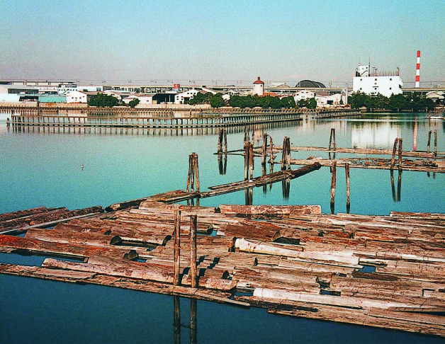 貯水場を囲み、製材工場が建ち並び、周辺を歩くと製材の木のかおりが漂う。深川木場から製材工場、木工工場、卸し問屋が集団移転した。