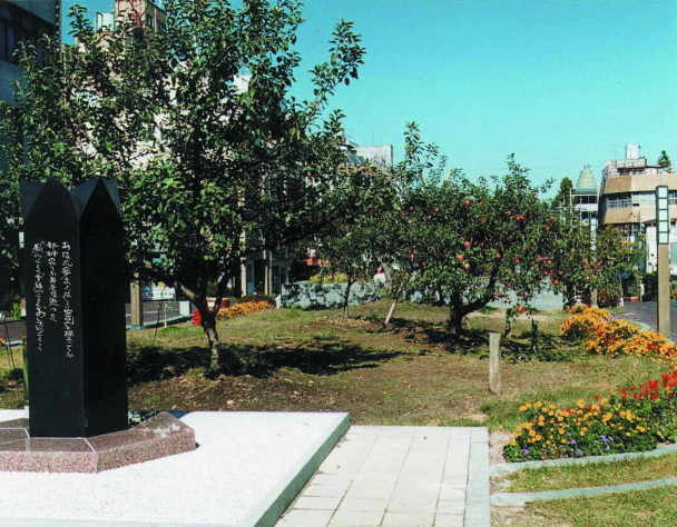 りんご並木は、飯田のまちの中心にあり、地元の中学生が育てている。春にはりんごの花、秋には赤いりんごの実のかおりが感じられる。やまびこマーチや人形劇フェスタの会場として、またこのほど並木に面して再開発ビルも建ちあがり、まちの賑わいと文化のかおりの拠点となっている。