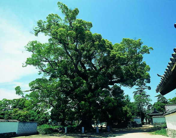 樹齢700〜800年のクスノキが境内に生育しており、クスノキ特有のかおりがする。国宝・重要文化財級の宝庫である熊野邸の前に高くそびえる景観は、歴史的雰囲気を漂わせている。白鳥神社のクスノキは県の保存木に指定され保護されている。
