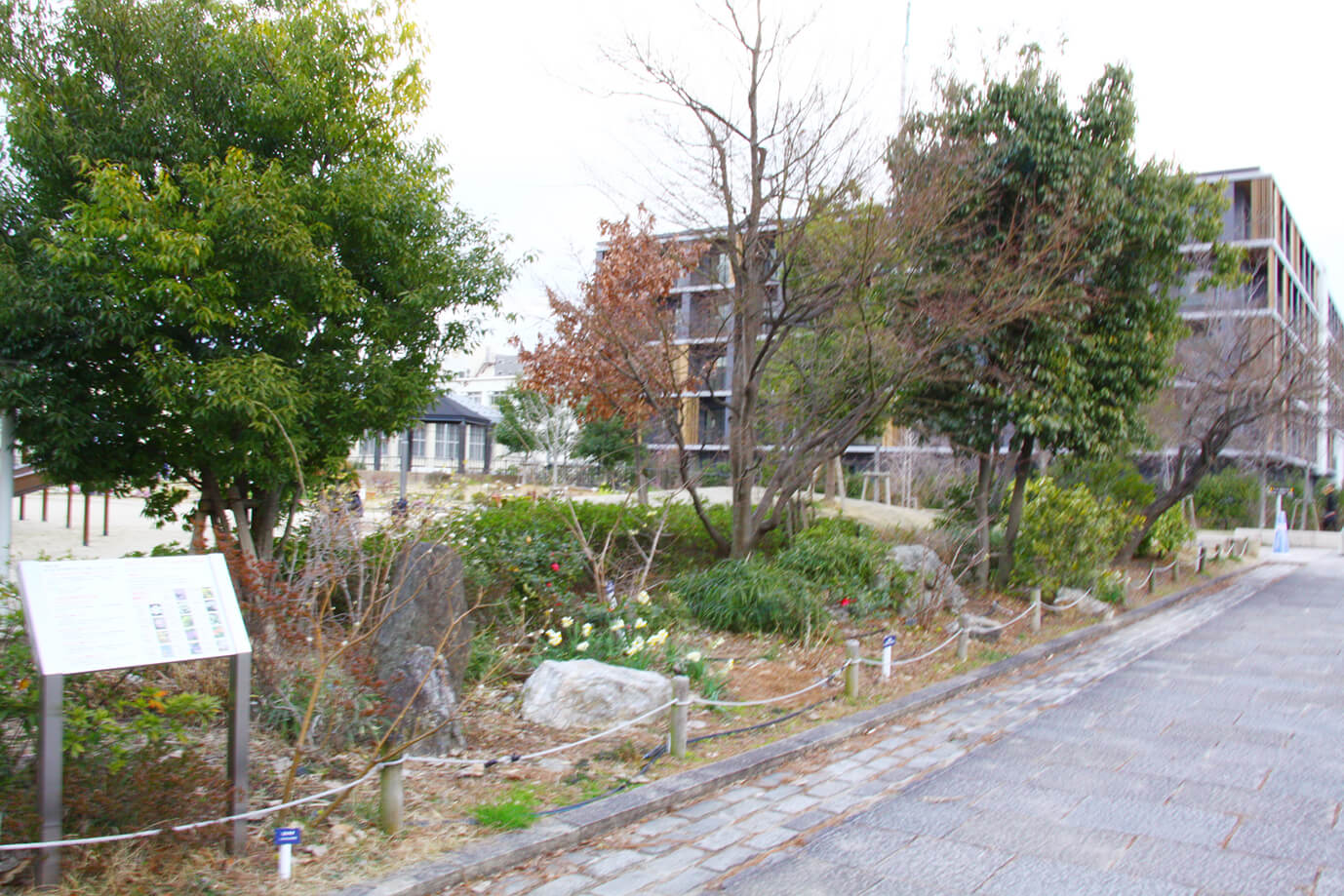 1995年に開園した梅小路公園。2012年に京都水族館が開業し、2016年春には京都鉄道博物館も開業。来園者を暖かく迎えるため、京都の生活文化に関わりがある花木、香草フジバカマなど「和の花」を植栽しました。子ども自然観察会での活用や公園ボランティアによる手入れを行っています。 約140 本の「梅林」、園芸療法の視点で運営する「セラピーガーデン」、花畑の風景をつくる「花の丘」、蝶を呼び込む「バタフライガーデン(みどり花壇)」などがあります。復元型ビオトープ「いのちの森」と日本庭園「朱雀の庭」(有料区域)では、稀少な「和の花」の生息域外保全に取り組みはじめています。