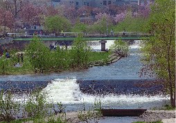 雪どけ水で水量が増している川と桜。水の音と桜や新緑のコラボレーションが北海道の春を感じさせてくれます。