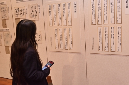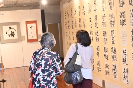 エコチル調査をテーマに、大地を感じさせる力強い書、風を感じさせる流麗な書など多数応募いただき、展示された書の前で記念撮影する方もみられました。また、短歌展では優秀作品を書家の方に揮毫いただくなど見ごたえのある展示となりました。![]() |