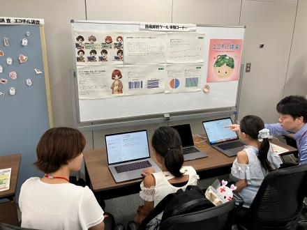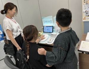 環境省が実施している、「子どもの健康と環境に関する全国調査(エコチル調査)」に関する研究内容をクイズやツールを使って体験いただきました。