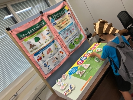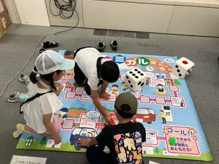 パズル、すごろくとも、お子さんに大人気。すごろくの大きなさいころを転がして、たくさん遊び、化学物質について学んでいただきました。