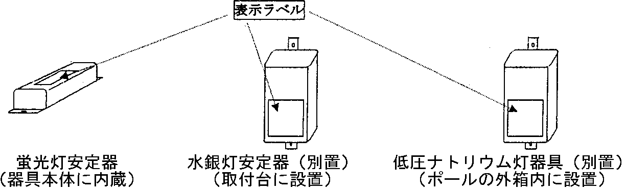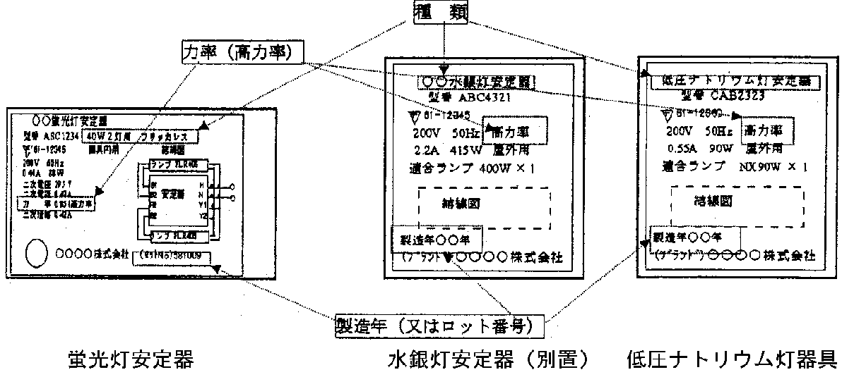 ●安定器の「表示ラベル」で種類・力率(高力率)・製造年(ロット番号)を確認し、該当するかどうかを判定して下さい。