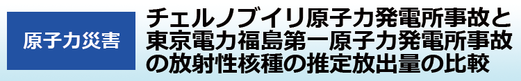 この表は、チェルノブイリ原子力発電所事故及び東京電力福島第一原子力発電所事故により、環境中に放出された放射性物質のうち、代表的なものを比較して示したものです。