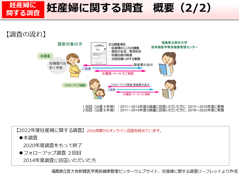 また、2015年度より2011年度調査に回答いただいた出産4年後の方を対象に、2019年度からは2011年度調査に回答いただいた出産8年後の方を対象に、こころとからだの健康状態を伺う2回目のフォローアップ調査を行っています。
