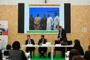 適応行動の強化のためには、世界規模での気候リスク情報のインフラ整備と、民間セクターを含む多様なステークホルダーの参加促進が鍵である。第1部では、山本環境大臣から、途上国の適応のNDCを支援するため、「日本の気候変動対策支援イニシアティブ」の下で「アジア太平洋適応情報プラットフォーム」を構築することが発信され、梶原地球環境審議官より、同プラットフォームの活動内容について具体的に説明が行われた。また、10月に開催されたアジア太平洋適応ネットワーク(APAN)フォーラムをホストしたスリランカ、国際適応ネットワーク(GAN)事務局の国連環境計画から、国際的な適応の知見共有の成果ついて報告が行われた。第2部では、我が国民間企業のCEO等から、途上国における適応協力の取組みについて発表が行われた。国際航業株式会社のウー代表取締役会長より、仙台フレームワークや持続的な開発目標(SDGs)、パリ合意は、長期戦略の中でビジネス機会と認識して、環境保護、防災、低炭素分野で国内外で貢献していることについて発表された。NECヨーロッパの池野代表取締社長より、ICTを通じたデータの観測や予測を行い、持続的な開発や気候変動に着目した活動として、フィリピンにおける津波予測や、スペインにおける効率的なごみ回収システムの構築例が取り上げられた。また、損保ジャパン日本興亜株式会社の関CSR部上席顧問より、気候インデックスを活用した保険として、タイの干ばつ事例、フィリピンのバナナ農家への保険、そしてミャンマーのゴマ農家への保険について説明が行われた。 IUCNのアリ博士より、民間企業による技術的提供は気候変動への適応、そして持続的な開発の分野において非常に重要な役割であることが言及された。 質疑応答において、途上国における取組について民間企業の活動を強化するための課題について、質問が挙がり、政策や規制の不足、予算、現地の人材の能力不足等が課題として挙げられた。また、気象データの不足が課題として挙げられ、日本政府の適応情報プラットフォームの役割について期待が述べられた。 |