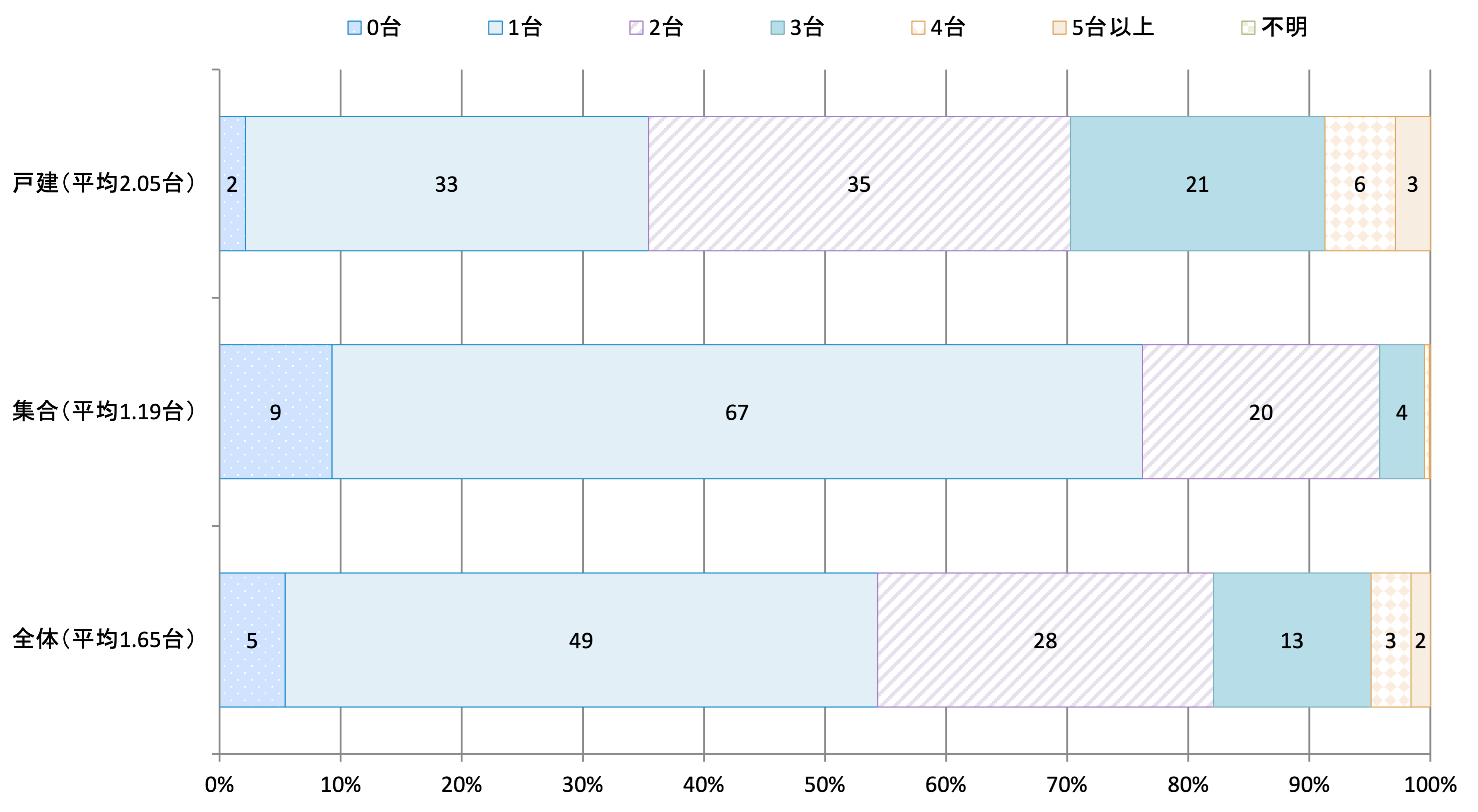 | 0台 | 1台 | 2台 | 3台 | 4台 | 5台以上 | 不明 | |