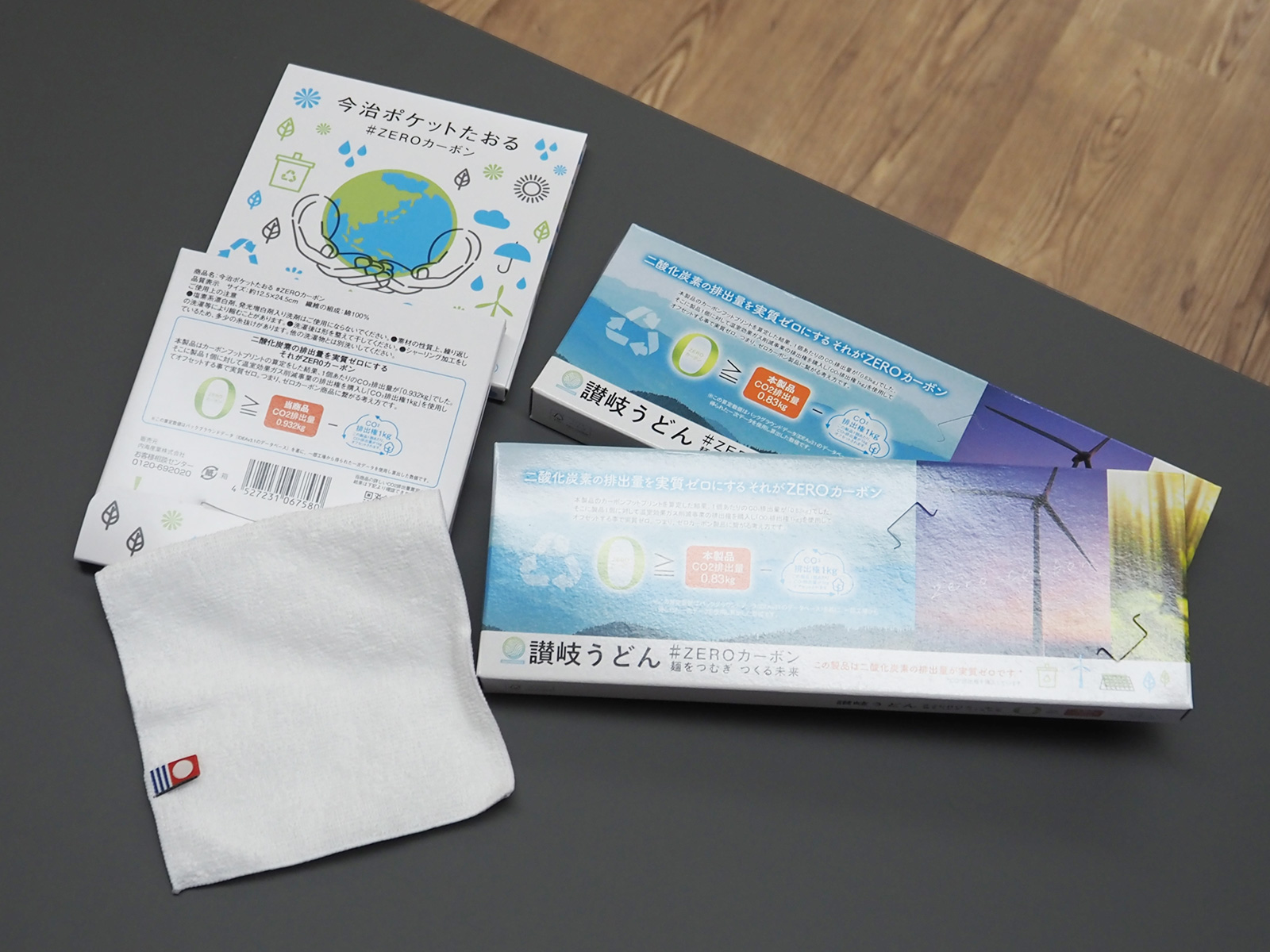 内海産業が展開するCFP算定結果にカーボンオフセットを付加し実質ゼロカーボン化したノベルティアイテム