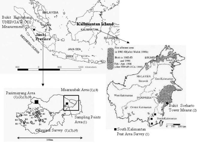 ¥¹¥Þ¥È¥éÅç ¡¡Pasirmayang¤ÈJambi¡§¼¾½áÇ®ÂÓÎÓ¡Ê(£±)¡¡¤(£²)¡¢¡Ê£³¡Ë¡¢(£´)¡Ë ¡¡Muarasabak¡§Å¥Ãº¼¾ÃÏ¡Ê(£±)¢¡¢(£´)¡Ë, ¡¡Bukit KototabangÂçµ¤ÃæÆó»À²½ÃºÁÇÇ»ÅÙ¬Äê¡Ê£²¡Ë ¥«¥ê¥Þ¥ó¥¿¥óÅç ¡¡South Kalimantan¡§Å¥Ãº¼¾ÃÏ¡Ê(£±)¢¡Ë, ¡¡Bukit Soeharto¡§CO2¥Õ¥é¥Ã¥¯¥¹¤ÈúÁǼý»Ù¤Î¬Äê¡Ê£²¡Ë, ¡¡¿ÞÃæ¤Î¡Ê¡¡¡Ë¤Ï¥µ¥Ö²ÝÂêÈֹ档