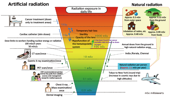 Exposure doses found to have health effects on people are considered to be at levels exceeding 100 millisieverts.
