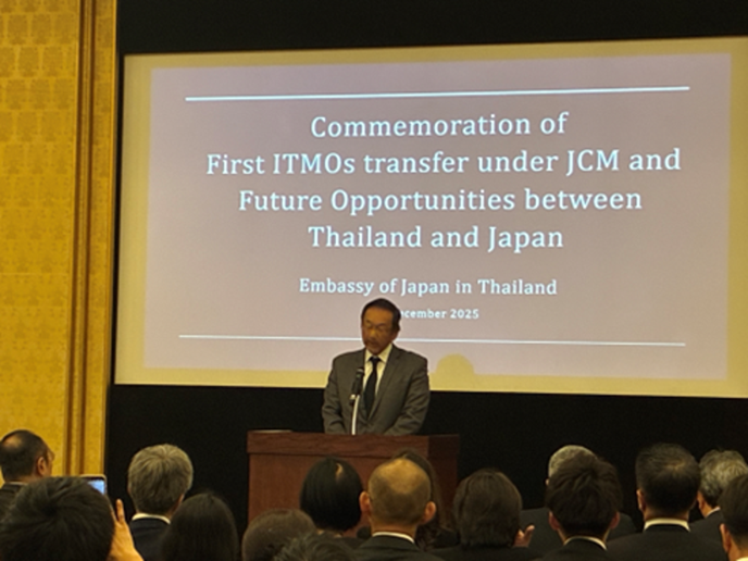 1. To commemorate the first issuance of the Internationally Transferred Mitigation Outcomes (ITMOs) under the Joint Crediting Mechanism (JCM), the Ministry of the Environment (MOE) of Japan, in cooperation with Thailand Greenhouse Gas Management Organization (TGO), a public organization under the Ministry of Natural Resources and Environment, Thailand, hosted “Forum on Advancing Article 6 Implementation through Business Engagement and JCM Project Matchmaking in Thailand” on December 17, 2025 in Bangkok, Thailand.