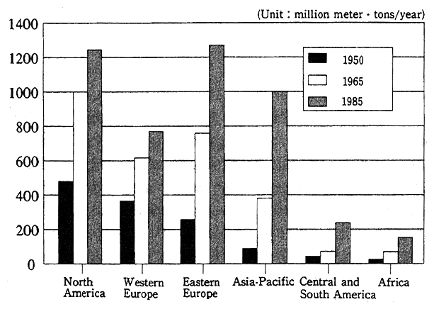 Fig. 2-1-5 Industrial-based Carbon Dioxide Emission Trends by Region, for 1950, 1965, and 1985
