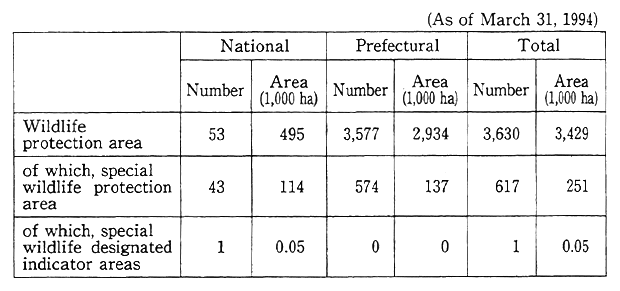 Areas were designated as protected forests to preserve aborigine forests, thereby contributing to the maintenance of the natural environ-merit, wildlife protection, and the preservation of genetic resources, By the end of March 1995, 24 locations covering approximately 313,000 ha were designated as forest ecosystem protection areas.