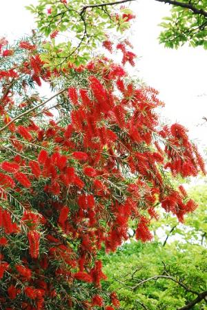 ブラシノキが今、満開です。(吉田茂像北武道館寄り)