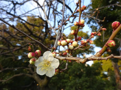 梅香る季節にはまだ早いようですが、枝先には丸い蕾が準備万端。日を追うごとにポツリポツリと花開いていきますので、今年のウメは長い期間楽しめるかもしれません。