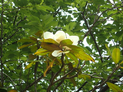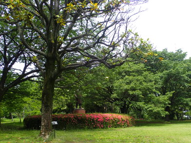 新緑の中で大きく立派な花、葉、樹形のタイサンボクは一際目立ちます。吉田茂像のすぐそばで見ることができます。