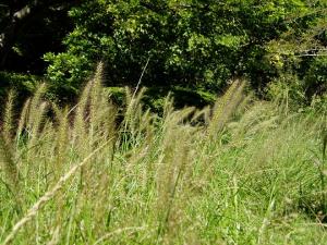 花木園中程で、チカラシバがふさふさと穂を揺らしながら群生しています。根が非常に強く、なかなか抜けない事からこの名がつきました。