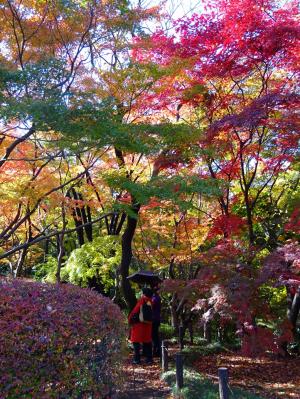 春の花の時とは異なり、秋の紅葉は一度に色を変えるのではなく、気温の低下とともに少しずつ黄色から赤へと色を変えながらハラハラと葉を落していきます。