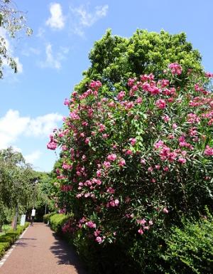 代官町通りの公園側に植栽されているキョウチクトウは今が見頃です。花の少ないこの時期に、華やかなピンク色が目を楽しませてくれます。