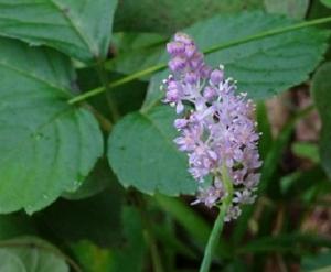 実(み)は徐々に藍色へと色づいていきます。色の移り変わりをお楽しみ下さい。ヤブミョウガは種でも発芽しますが、地下茎でも増えるため、公園西側では群生をご覧いただけます。