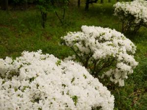 吉田茂像周辺に、白色の大きな花が咲き始めました。