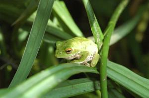 モリアオガエル。他にシュレーゲルアオガエル、ツチガエル、アマガエルが見られました。