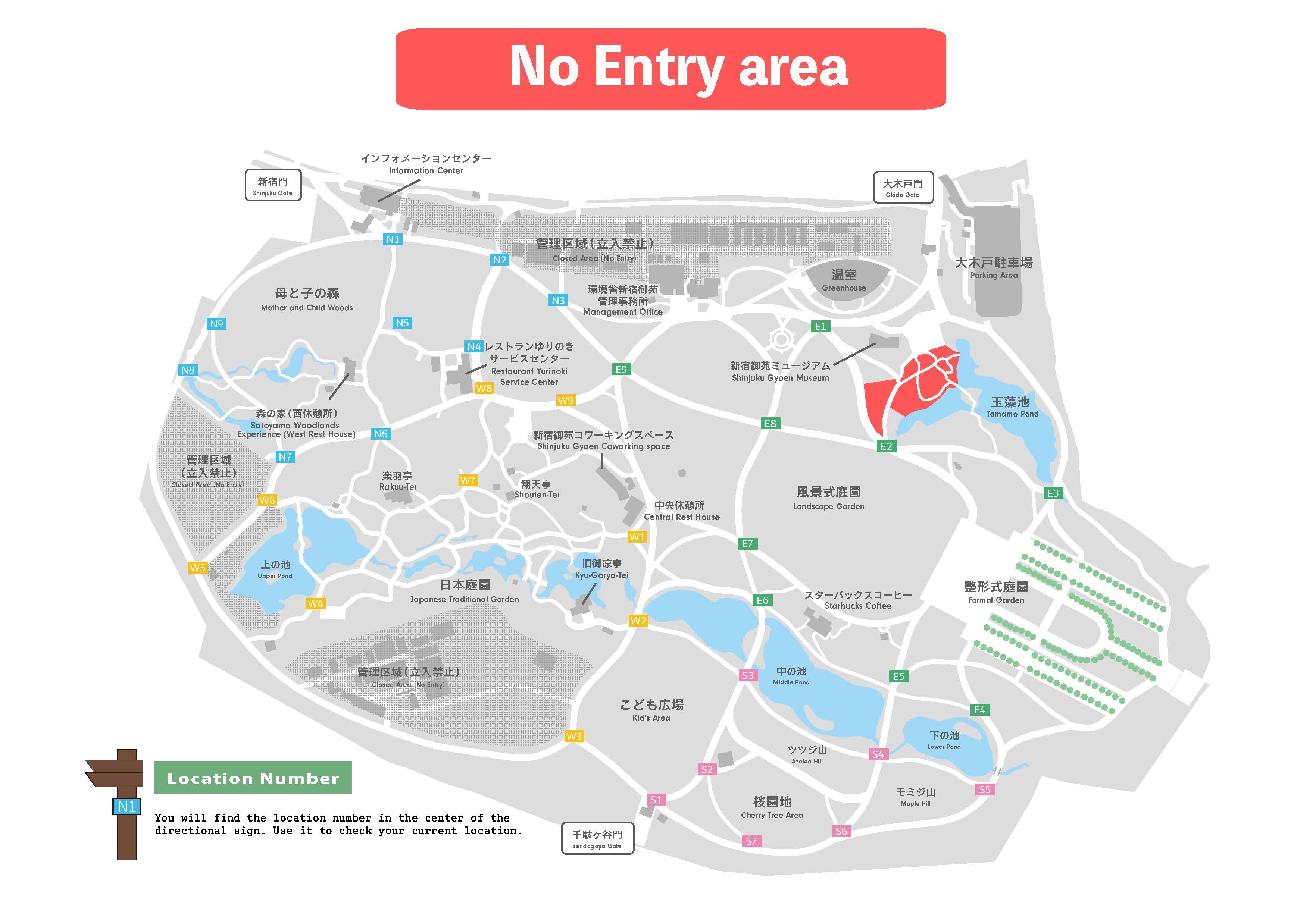 Running is only allowed on the designated loop in red (see the map below). Groups of 10 or more are not allowed to run together. Please note that running is NOT allowed in the garden during the Spring Special Opening Period from March 20 to April 24 and the cherry blossom season, which partially overlaps with the above-mentioned period.