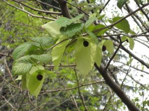 ハンカチノキ。苞(ホウ)が伸びて、ハンカチらしくなってきました。