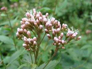 七草の一つとして秋の植物を代表するフジバカマは、色が藤色で、花が袴(はかま)のような形から名付けられたと言われます。野生では河川敷などで見られましたが、開発工事などのために数が少なくなり絶滅危惧種に指定されています。