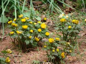 ・フクジュソウ・・日本庭園お茶室「楽羽亭」横