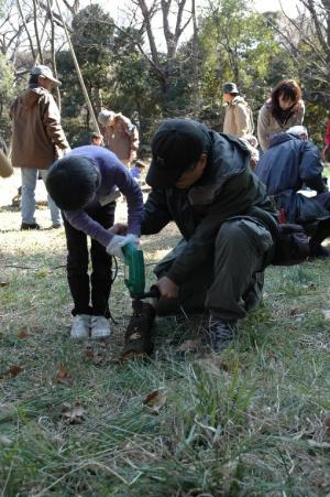 スタッフの補助を受けてドリル使いにチャレンジ