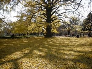 散策路の「イチョウ」。散策路は新宿門と大木戸門を結ぶ歩道です。黄色いじゅうたんが輝いています。☆オススメ