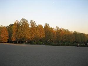 フランス庭園のプラタナス並木。見頃です。