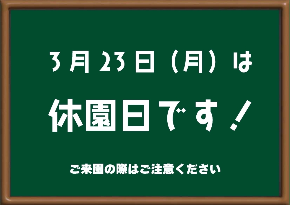 【注意】3月23日(月)は休園日です。ご注意ください!