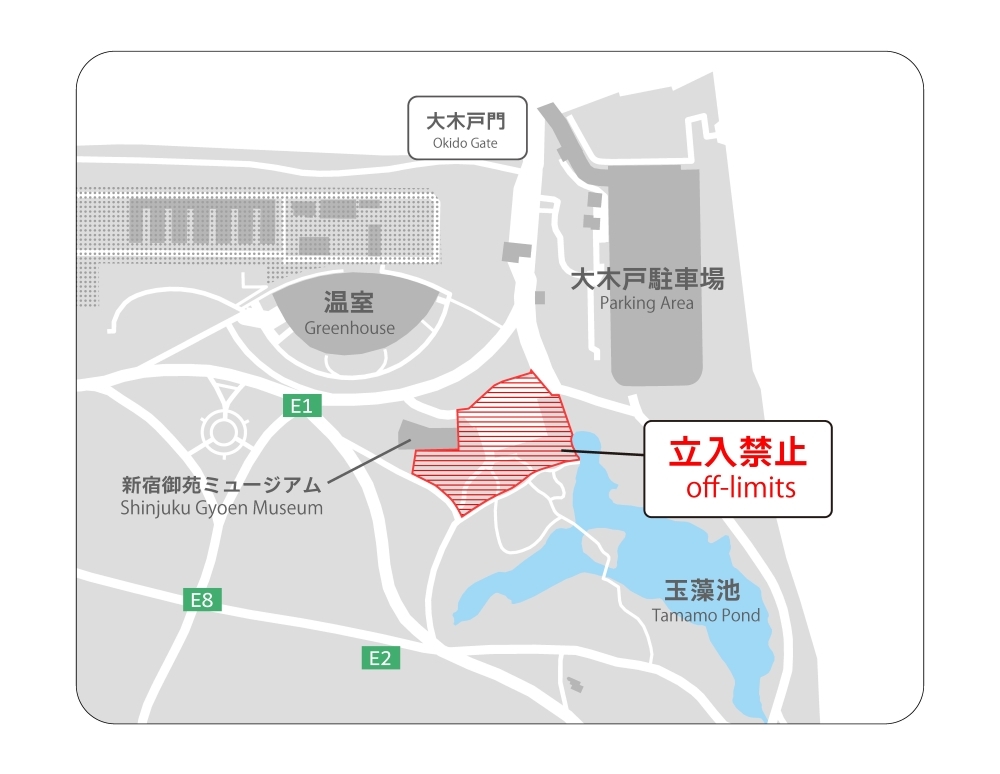 ◆ Affected Areas : Areas marked in red on the map below (Around Tamamo Pond)