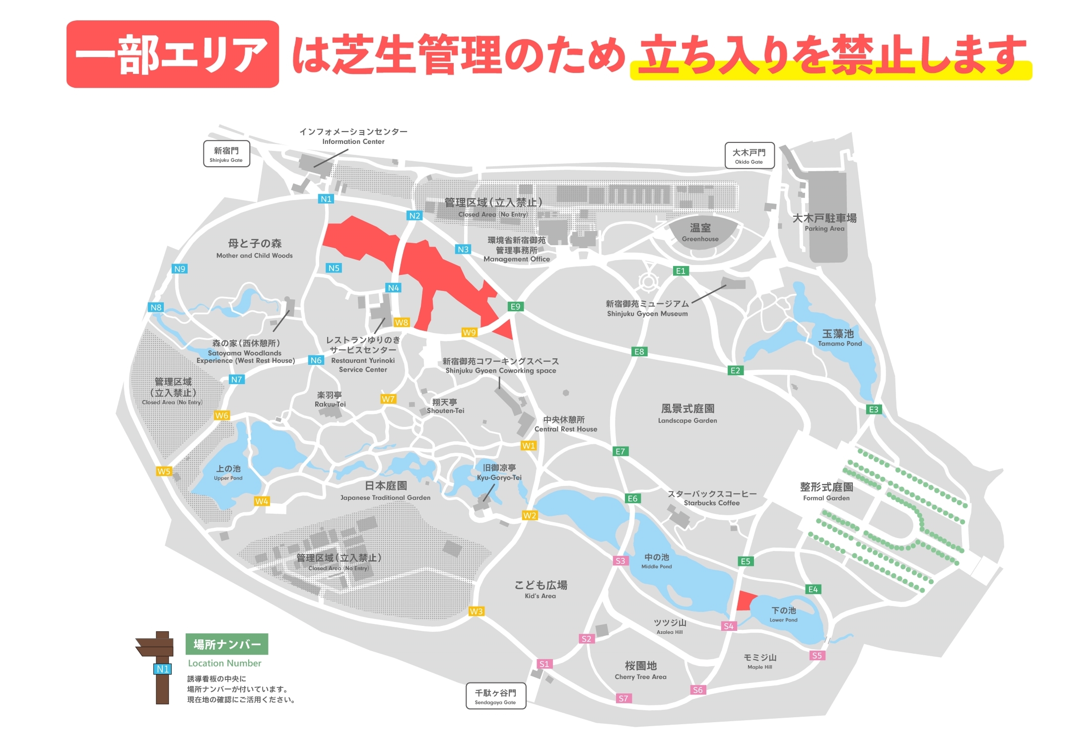 芝生管理のため、園内一部区間において立ち入りを禁止致します。