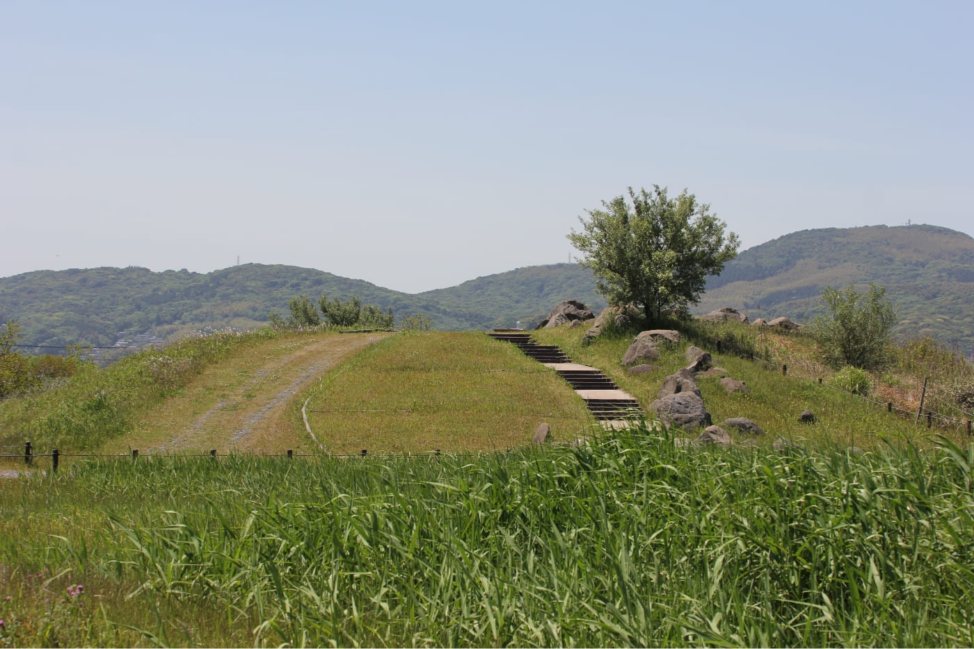 見晴らし台は周辺より5mほど高く、響灘ビオトープの全41ヘクタールを見渡せる場所。