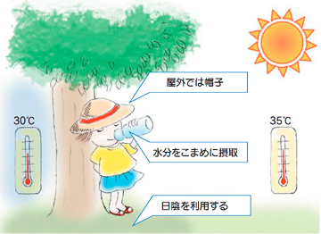 小さな子どもや高齢者、病気の方などは特に熱中症になりやすく、重症になると死に至るおそれもあります。熱中症にならないために、こまめな水分補給や帽子などで直射日光を防ぐなど、予防をしましょう。また、環境省熱中症予防情報サイトでは、熱中症へのかかりやすさを示す「暑さ指数(WBGT)」の情報提供を行っています。